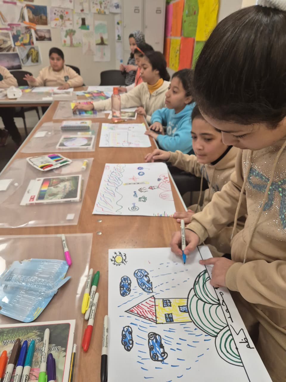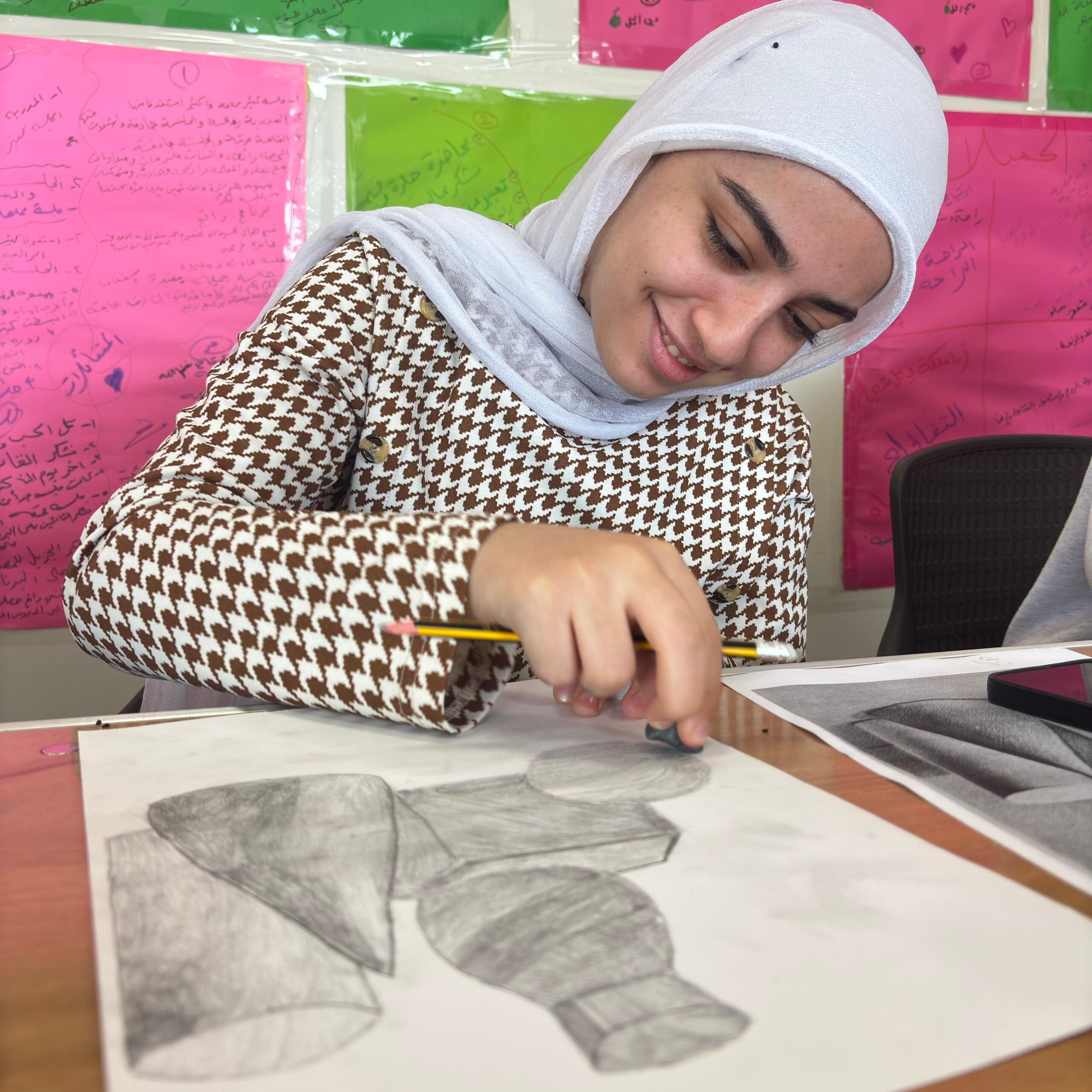 The drawing skills and artistic design is a one-month structured training program consisting of eight art sessions, designed to serve different age groups through separate groups for children, adolescent girls and women. The program is delivered under the supervision of specialized and experienced art teachers and aims to provide beneficiaries with a solid foundation in drawing and visual arts through an organized and age-appropriate learning approach.
